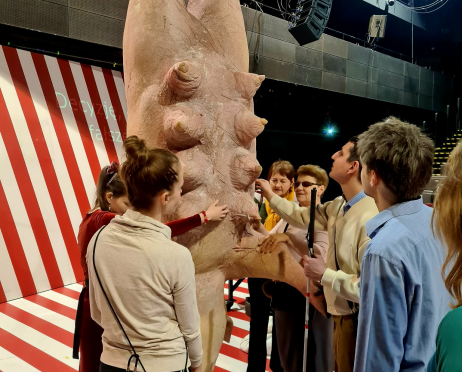 Przeprowadziliśmy zwiedzanie Teatru w polskim języku migowym (PJM) dla dzieci i młodzieży, przybliżającego przestrzenie teatralne oraz kulisy funkcjonowania instytucji.